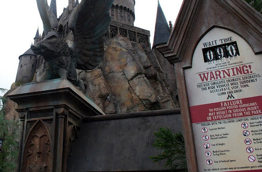 And finally, I’m not going to spoil the ride, but it is INTENSE. If you get motion sickness, I really don’t recommend going on it. And definitely wait to get butterbeer until after the ride! It’s probably the most technologically advanced ride I’ve ever been on. But Universal Studio’s approach to making a Harry Potter ride was to take every scary, thrilling bit from the movies and throw it into one ride. I wouldn’t say it’s very “little kid friendly.” But maybe little guys are tougher than I was back in the day… Here’s the warning sign for the ride. The 90 minute wait time was the shortest we saw all day…